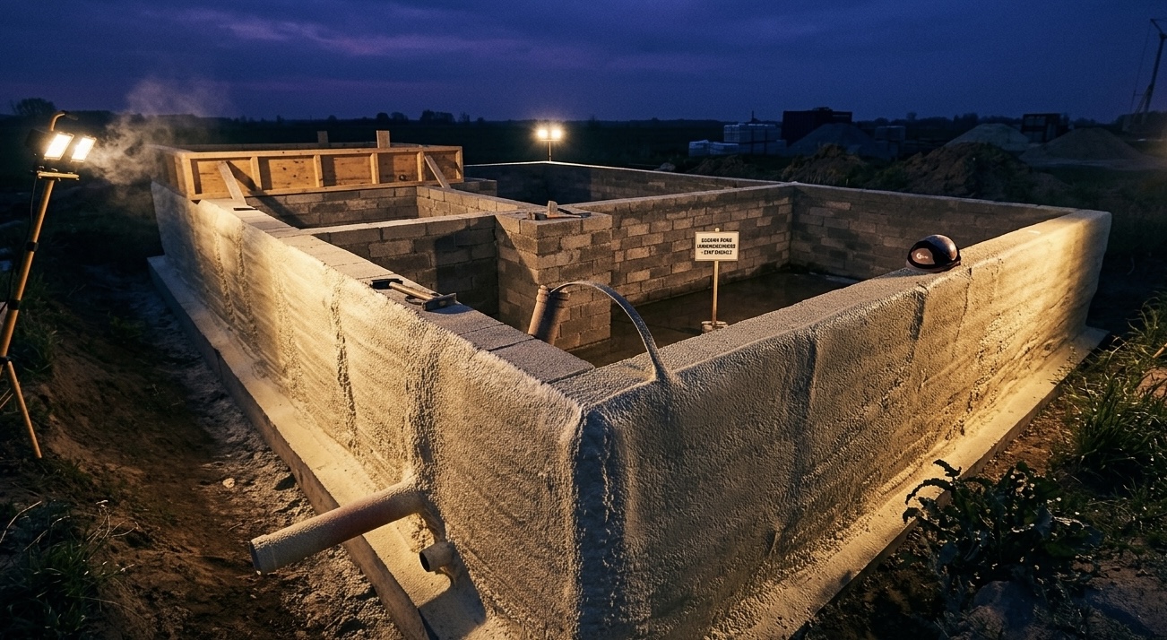 Hydroizolacja i ocieplenie fundamentów budynku wielorodzinnego. Ochrona przed wilgocią i przemarzaniem na głębokość 2m.